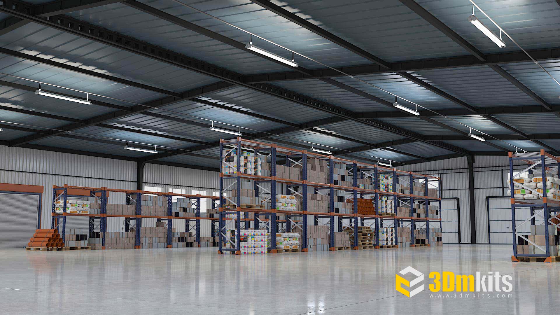 WAREHOUSE 3D MODEL - full building with detailed cargo PBR materials